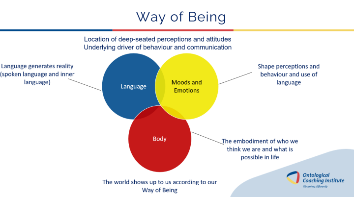 Our "Way of being" refers to interactions of the three domains that constitute us: Language, Emotions, and the Body. (Please click on the picture to enlarge the size).